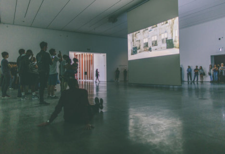 The presentation was simple. A projection screen was suspended in the middle of a large gallery in the museums Broad Contemporary building. The video was being projected on both sides of the screen with standing room only all around. Four oversized speakers sat in each corner of the room blasting the soundtrack that could be heard throughout the whole building. It was a spectacle for sure, but still had a simplicity that was not expected from the likes of Kanye West.