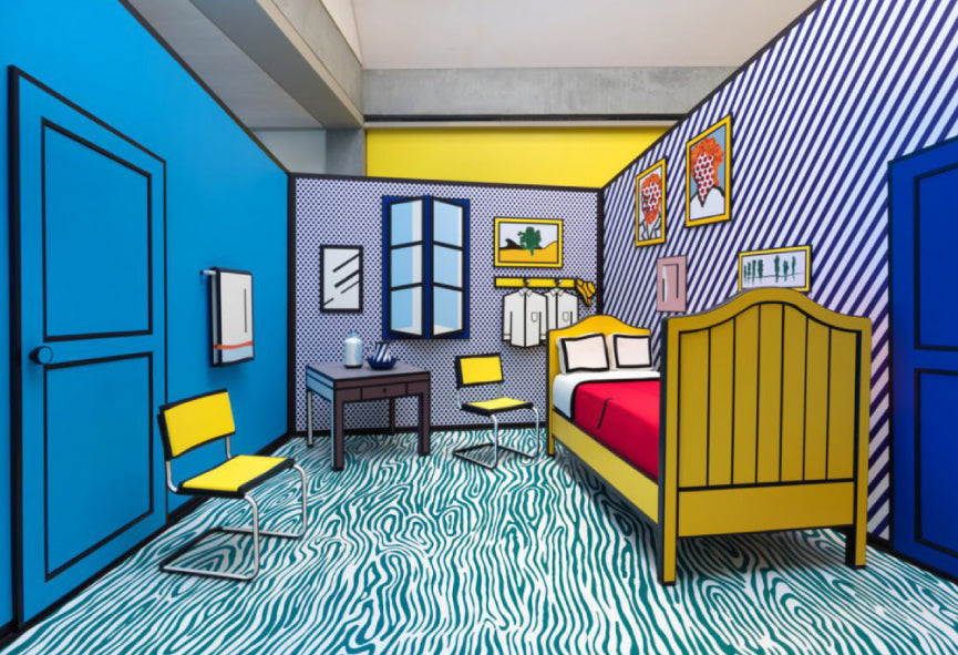 The best part of the exhibit though is a full room installation made in iconic Lichtenstein style. It is his pop-art take on Van Gogh's 'Bedroom in Arles' in real life, and as you can see from the photo, it is fully experiential. We think it's pretty obvious by now that we are suckers for a good selfie moment and this exhibit did not disappoint. If you are in the Los Angeles area, we highly recommend that you check this thing out while it lasts, as the exhibit is set to end on the 12th of March next year.