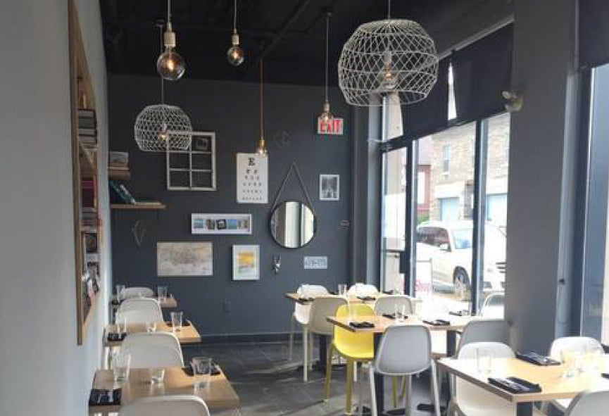 As for the space, designed locally by designer Shannon Smithers-Gay from the firm One80 Design, Carben has a modern and rustic design with some industrial touches throughout. Thanks to our local Ottawa retailer, The Modern Shop, our Array Pendant, lighting fixtures are the ceiling lamps for the restaurants main dining room. We love the way the white wire orbs stand out in the space with an otherwise dark color pallet. All in all, we absolutely love the restaurant's design and wish them much success in the future.