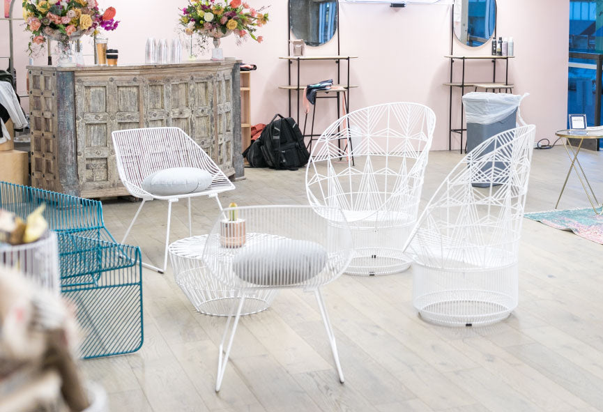 For the Los Angeles Conference, the C&C team approached Bend to provide furniture and accessories for sections of the event. Upon being asked, our minds immediately began racing to determine which pieces we wanted to provide and suggest for the event and we couldn’t have been happier with the end result! From the Art Pieces installed along the outdoor hedgerow for decoration to the suite of furniture used for the Green Room lounge, all of the pieces created a clean and beautiful aesthetic that fit both ours and Create & Cultivate’s visions.
