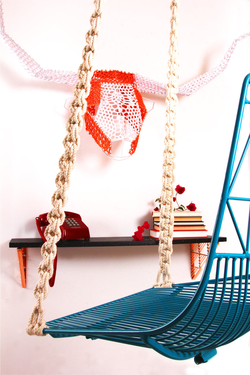 Here at Bend, we are all big fans of mid-century modern craft, art and design. We had thought of doing something with Macrame incorporated into our wire frames for quite some time. Macrame has always been a big influence in the patterns of our furniture. When we met Nikki Katz, from Assembly of the Wild, and saw her incredible work, we knew right away that she would be the maker for this project. We talked briefly about the idea of doing a hanging chair and funny enough, she had been approached about doing one as well. We think this collaboration is a match made in mid-century heaven.