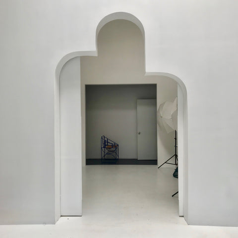 The playfully shaped doorway that connects the showroom floor to our photo studio features a triple arch of differing heights. The archway allowed us to add a little Bend to the permanent space!