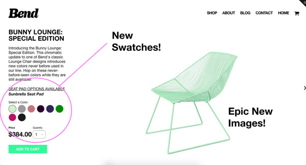 BendGoods.com has been redesigned to include features tailored to be user friendly. New swatch systems, large scale imagery, and new product descriptions have all been added for your shopping (and viewing) pleasure! We hope that this change will make the Bend Goods shopping experience easier for you and for all future customers.