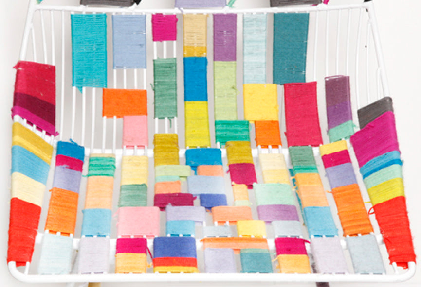 Eddie took organic yarn in almost every color imaginable and started to weave it into the wires of the chair. The end result is a one of a kind color-blocked piece of art. Check out the photo gallery on the top left for a closer look at the design. We unveiled the collaboration at ICFF 2014 and our Color-Blocked Lucy Chair was a big hit. She got coverage all over town reaching as far as Brazil where Brazilian Vogue included the Lucy in a design round up in their September 2014 issue.