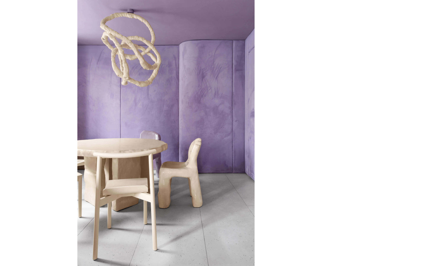 According to Hommes Studio they have decided that this new color has been created specifically for commercial space and we couldn't agree more. With 2022 being a year that many have settled into their new work environments, there's been plenty of makeover interior designs for the workplace. And possibly how Very Peri has made it to Pantone Color of The Year. "Very Peri is simultaneously feminine, powerful, futuristic, and joyful. This blend of blue and red is a great color for commercial interior design projects". This got us thinking why commercial and not residential and here's what they had to say, "In residential interior design, Very Peri bombs on tapestry, upholstery, and home accessories. And if you could only match Very Peri with one interior design style that would be the Memphis Design Style." We took their word for it considering Mephis style is not for everyone, kind of an acquired taste really. But for a work environment or commercial space such as a cafe, Very Peri excels at creating a distinguished setting. For example, Cafe Krujok by designers Kety Pitiskaya and Eduard Eremchuk. The design relies almost entirely on the beauty of this hue as it sets an inspiring vibe paired with a neutral tan. It's a well played design and creates a sense of focus on the shape of the furniture designs throughout Cafe Krujok. Its a clean minimalist design that's carried heavily by Very Peri, one of the best examples so far for 2022.