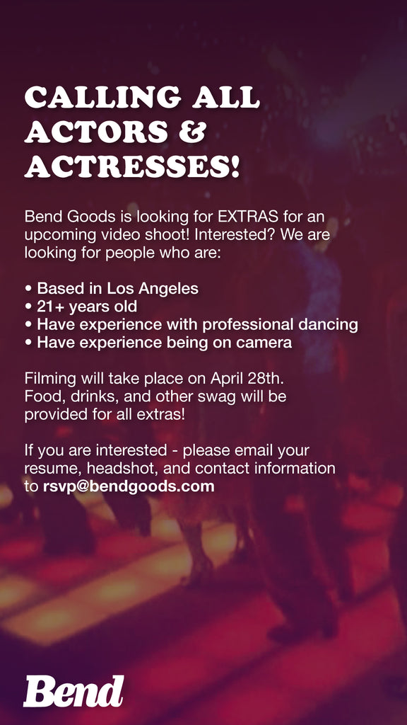 Bend Goods is looking for EXTRAS for an upcoming video shoot! This video will be used for digital advertising and promotion of our company. Please apply if you meet the below requirements: